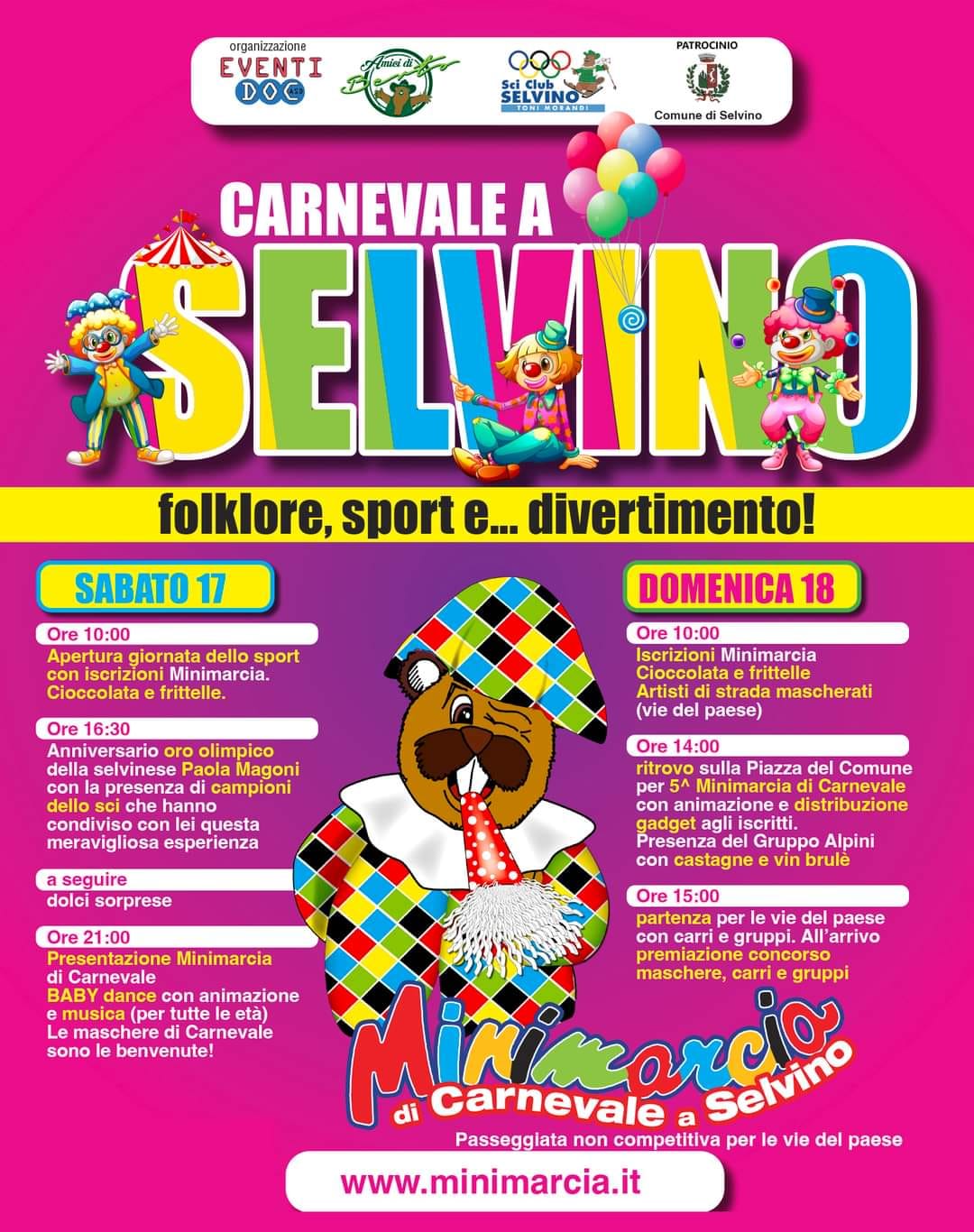 - Ore 21:00 Presentazione Minimarcia di Carnevale con baby dance, animazione e musica per tutte le età.