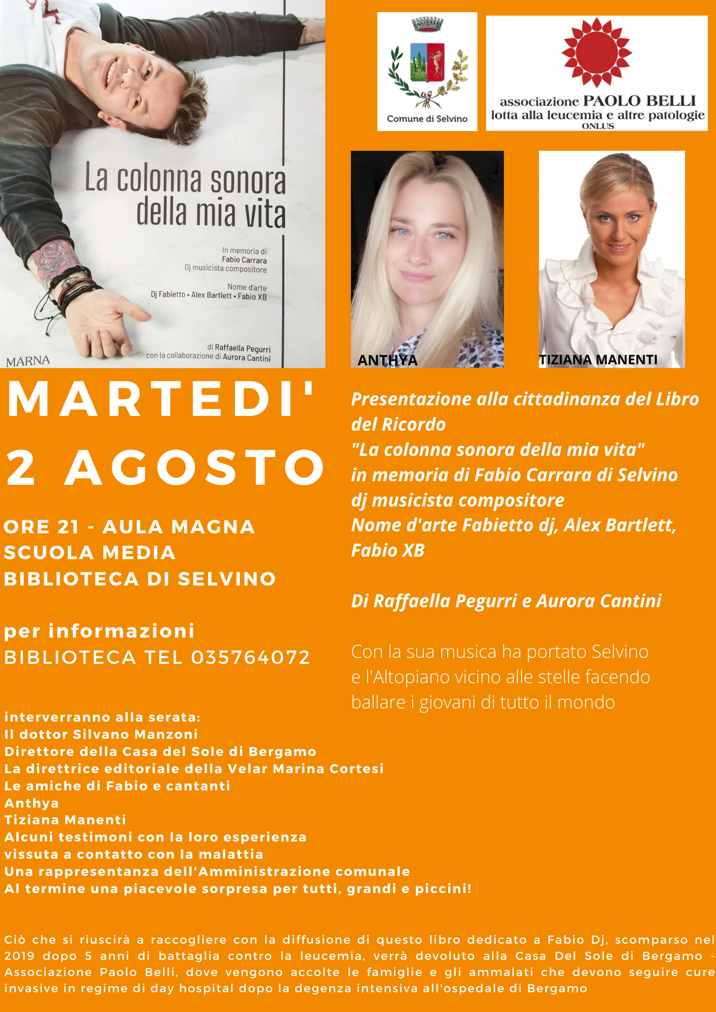 Dj Fabietto ha portato Selvino e l'Altopiano icino alle stelle facendo ballare i giovani di tutto il mondo grazie alla sua musica. Ciò che si riuscirà a raccogliere con la diffusione di questo libro dedicato a Fabio Dj, scomparso nel 2019 dopo 5 anni di battaglia contro la leucemia, verrà devoluto alla Casa Del Sole di Bergamo - Associazione Paolo Belli, dove vengono accolte le famiglie e gli ammalati che devono seguire cure invasive in regime di day hospital dopo la degenza intensiva all'ospedale di Bergamo.