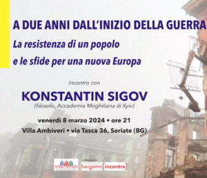 A due anni dell’inizio della guerra in Ucraina, Fondazione Russia Cristiana, in collaborazione con l’Associazione Bergamo Incontra, propone un incontro con il filosofo ucraino Konstantin Sigov, implicato da sempre con la vita del Paese. Sigov è fra i docenti più in vista della più antica università ucraina, l’Accademia Mohyla di Kiev, e lo scorso marzo ha scritto una lucidissima e vibrante “Lettera da Kiev” capace d’attirare l’attenzione internazionale (in Italia, l’ha tradotta la rivista Limes).