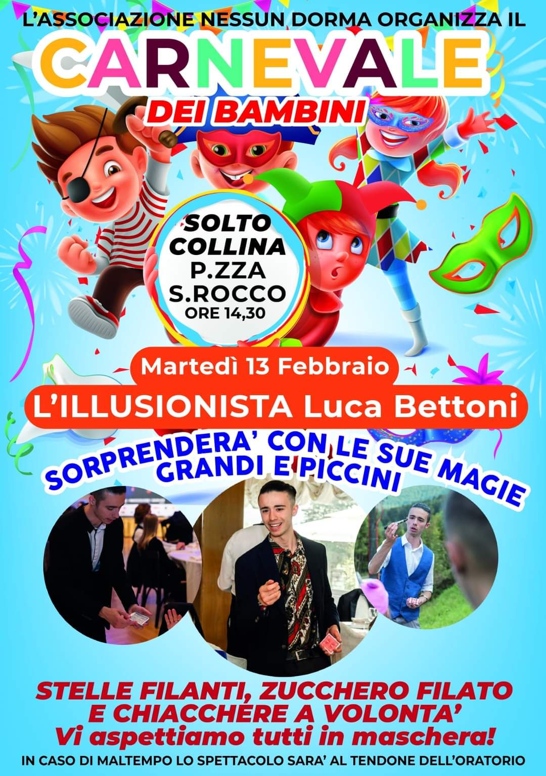 L'Associazione Nessun Dorma organizza, per martedì 13 febbraio, un carnevale dedicato ai bambini a Solto Collina.