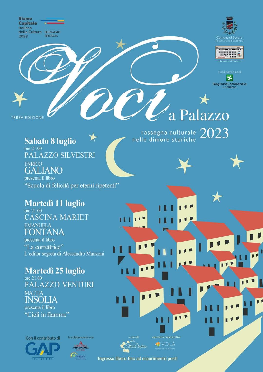 Lโultimo appuntamento si svolgerร martedรฌ 25 luglio alle ore 21 presso Palazzo Venturi, con la presentazione del libro โCieli in fiammeโ di Mattia Insolia, in dialogo con Stefano Malosso.