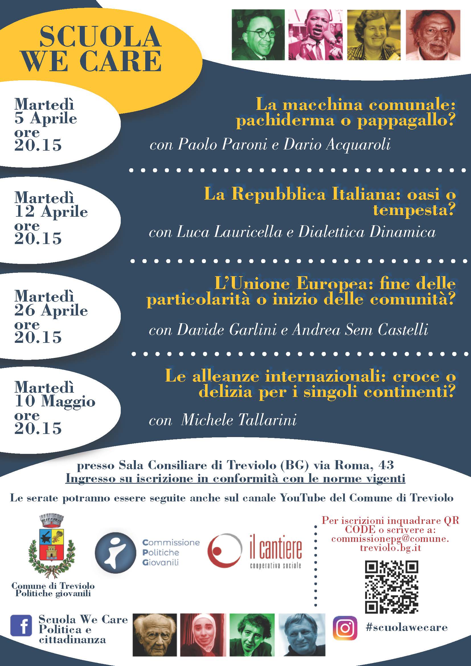 L'Amministrazione comunale e la Commissione Politiche giovanili, in collaborazione con Acli Bergamo e la scuola WeCare, propongono un percorso gratuito di educazione politica, aperto ai giovani e a tutta la cittadinanza.