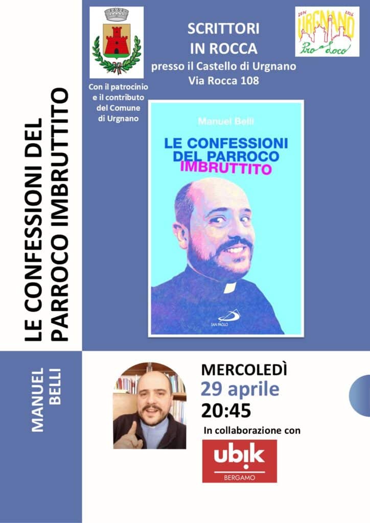 L'appuntamento prevede del libro "LE CONFESSIONI DEL PARROCO IMBRUTTITO" scritto da Manuel Belli.