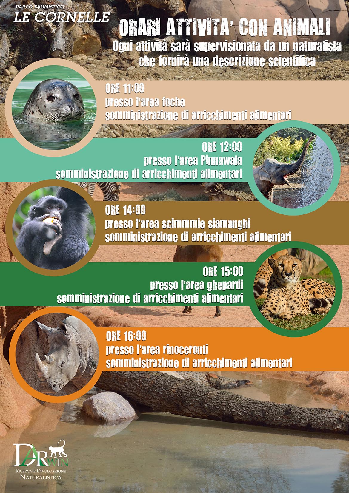 Il programma prevede l'incontro tra naturalista e visitatori davanti a foche, elefanti, siamanghi, ghepardi e rinoceronti.