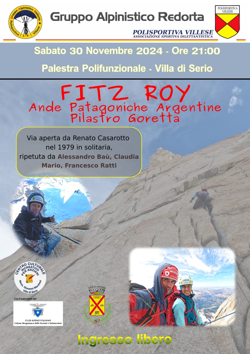 Sulle Ande Patagoniche Argentine: il Pilastro Goretta. I tre alpinisti Claudia Mario, Alessandro Bau e Francesco Ratti racconteranno la loro esperienza alpinistica in Argentina, anche attraverso video suggestivi.
