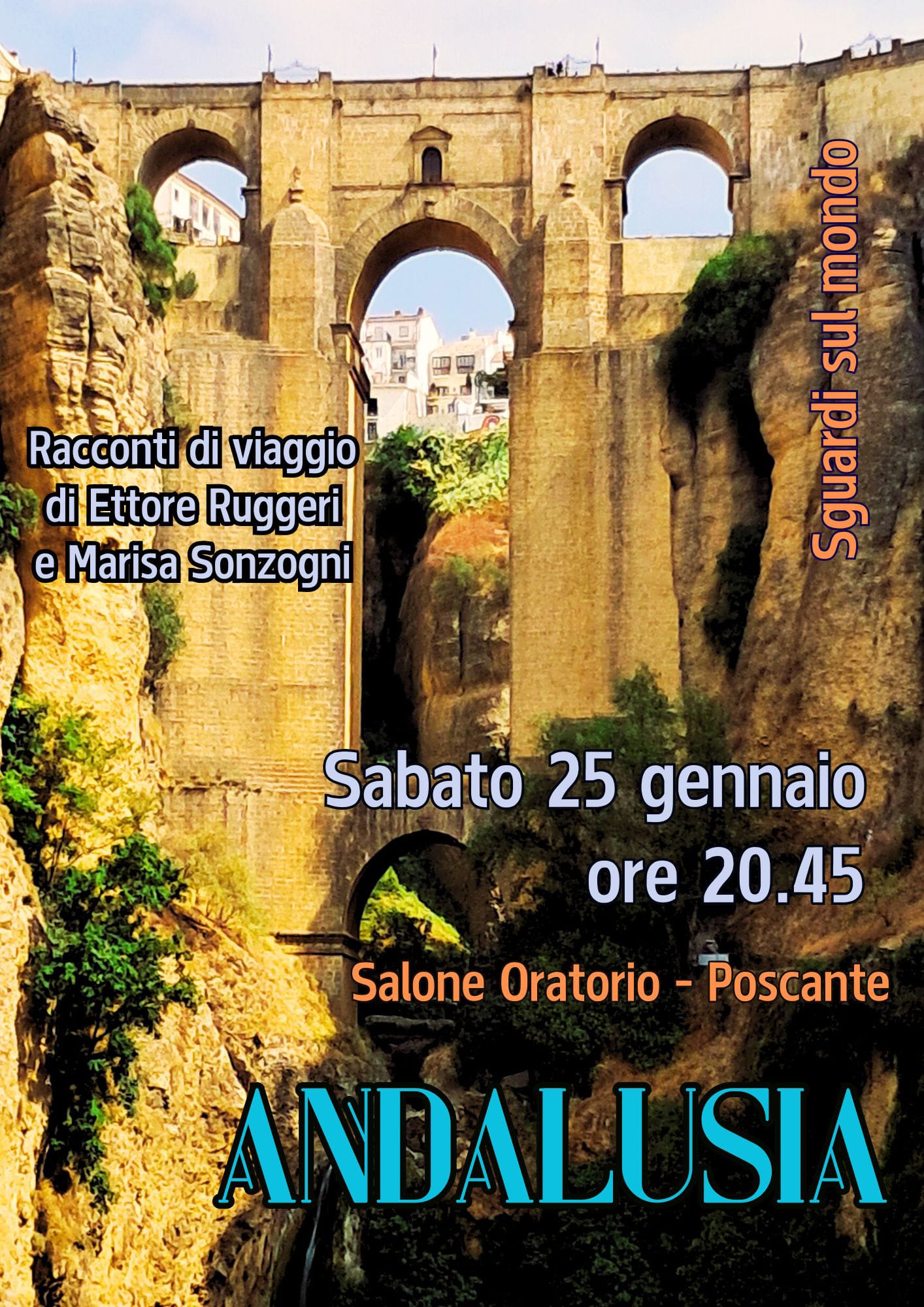 Nel salone dell’oratorio il racconto con foto e video di un viaggio in Andalusia: nove tappe tra storia, cultura, paesaggi spettacolari. Un esempio straordinario di coesistenza e fusione di culture diverse, un crocevia di popoli che hanno lasciato in eredità uno scrigno colmo di ricchezza artistica e culturale unica.