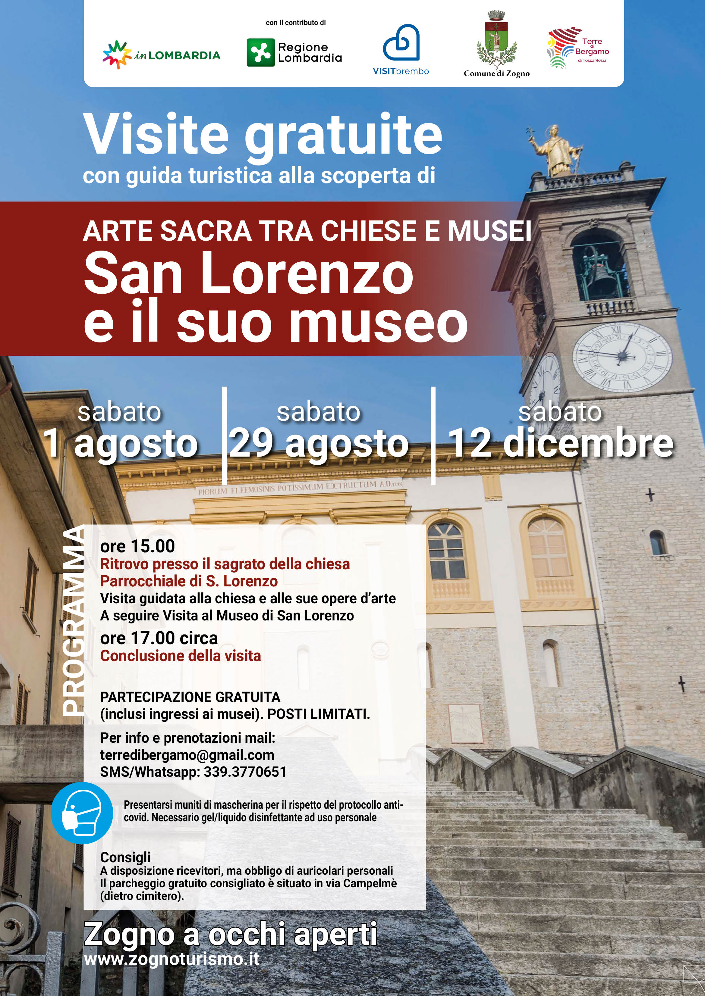Una guida turistica certificata accompagnerà gratuitamente alla scoperta della Parrocchiale e delle opere d’arte al suo interno e al Museo di San Lorenzo. "Arte sacra tra chiese e musei" è una visita che porterà a scoprire curiosità e storia locale legate alla costruzione della Chiesa attuale e a scoprire le collezioni di arte sacra, frutto delle ricerche di don Giulio Gabanelli, e di un gruppo di cultori di storia locale che hanno raccolto e poi restaurato oggetti religiosi e testimonianze d’arte sacra, prodotti per la maggior parte in Valle Brembana, ma provenienti anche da altre vallate alpine e località della provincia.