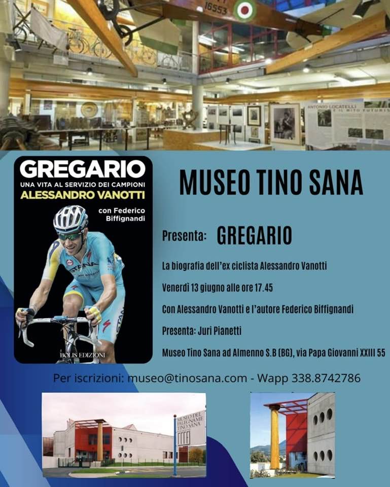 Il Museo del Falegname Tino Sana è lieto di ospitare la presentazione di «Gregario. Una vita al servizio dei campioni» biografia dell’ex ciclista professionista Alessandro Vanotti, scritta con Federico Biffignandi.