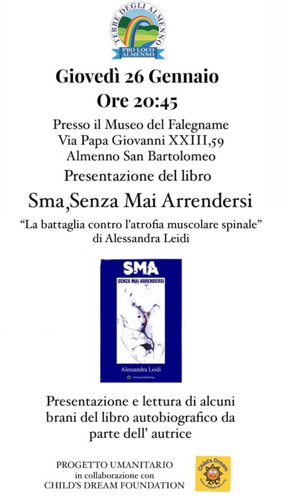 Giovedì si svolgerà la presentazione del libro “SMA, Senza Mai Arrendersi” di Alessandra Leidi che sarà presente alla serata.