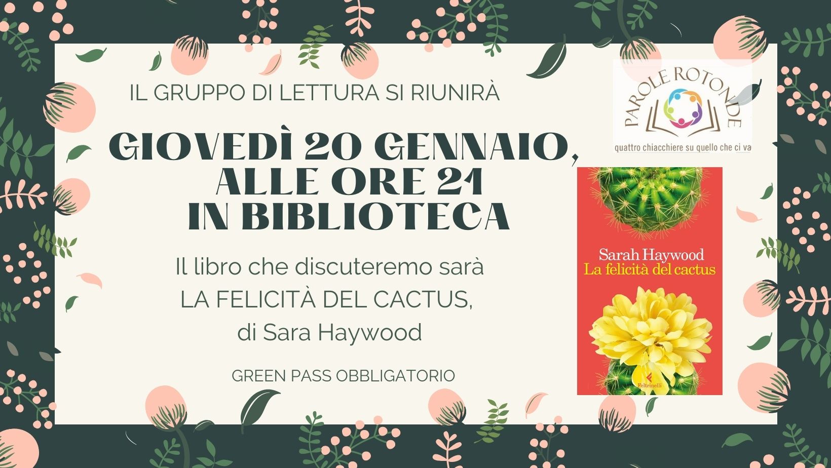 Giovedì 20 gennaio alle 21 presso la biblioteca comunale, il gruppo di lettura Parole Rotonde si riunirà per discutere Il libro: "La felicità del cactus" di Sara Haywood.