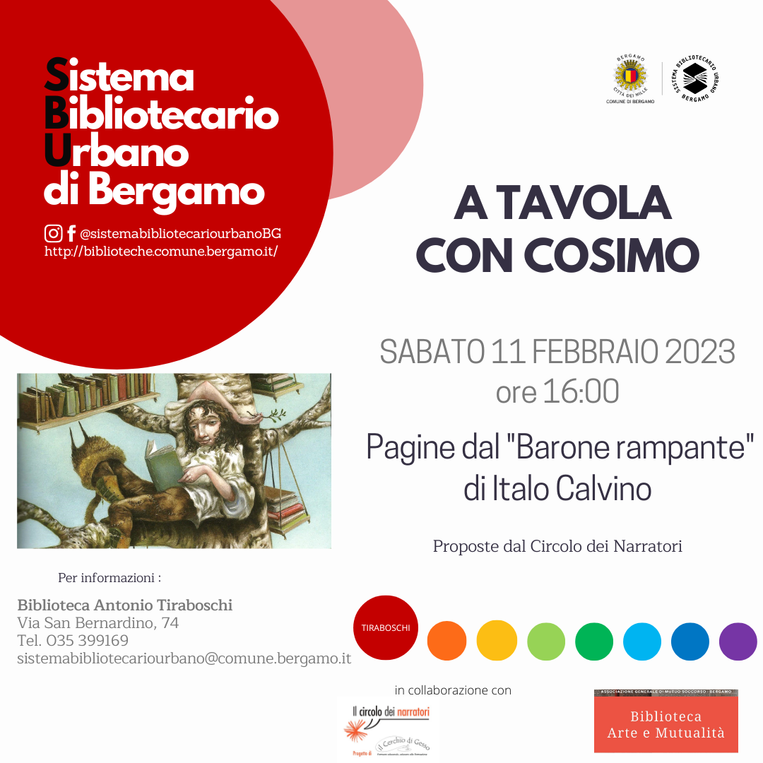 È a tavola col rifiuto di un piatto di lumache che comincia la rivolta di Cosimo Piovasco di Rondò, rivolta che lo porterà a passare il resto dei suoi giorni in cima agli alberi. Ed è attorno a una tavola che il Circolo dei Narratori proporrà le pagine più significative del "Barone Rampante", per rivivere le imprese e gli amori di Cosimo.
