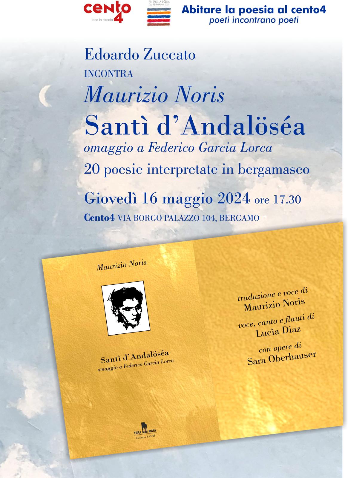 Nel primo incontro Edoardo Zuccato incontra Maurizio Noris per la presentazione del libro "Santì d'Andalöséa" omaggio a Federico Garcia Lorca, composto da 20 poesie interpretate in bergamasco, ed. Teramata, 2023.