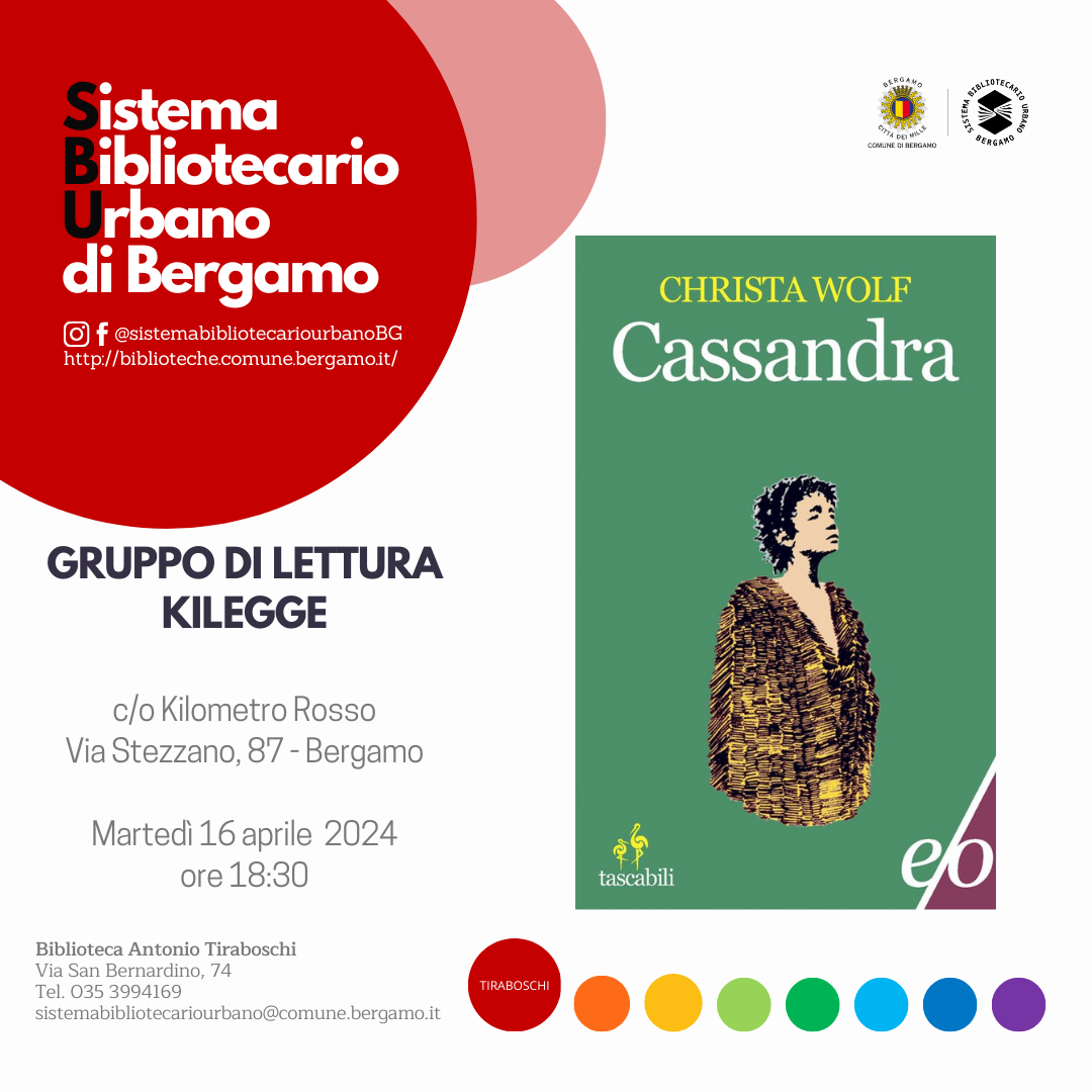 Il gruppo di lettura Kilegge discuterร del romanzo di Christa Wolf. Nel romanzo la protagonista, veggente figlia di Ecuba e Priamo, racconta il tramonto e la rovina della sua cittร .