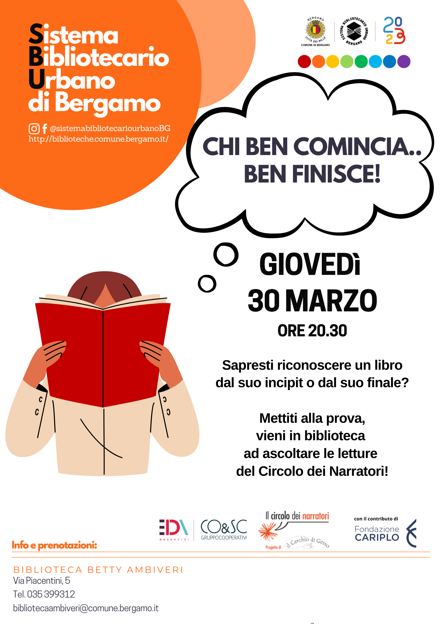 Sapresti riconoscere un libro dal suo incipit o dal suo finale? Mettiti alla prova, vieni in biblioteca ad ascoltare le letture de "Il circolo dei Narratori".
