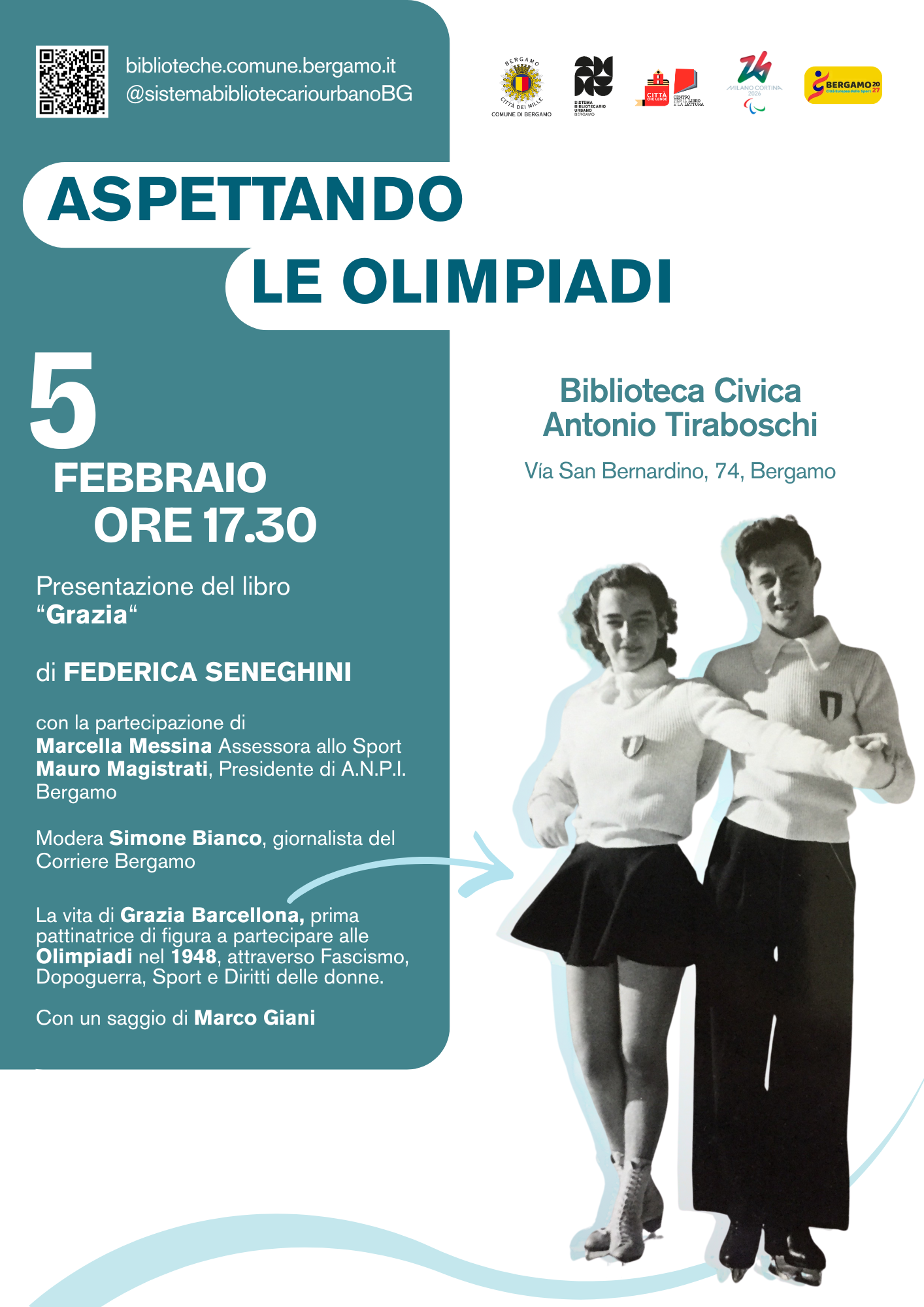 Aspettando le Olimpiadi, è in programma una presentazione del libro Grazia di Federica Seneghini, che racconta la vita della pattinatrice Grazia Barcellona.