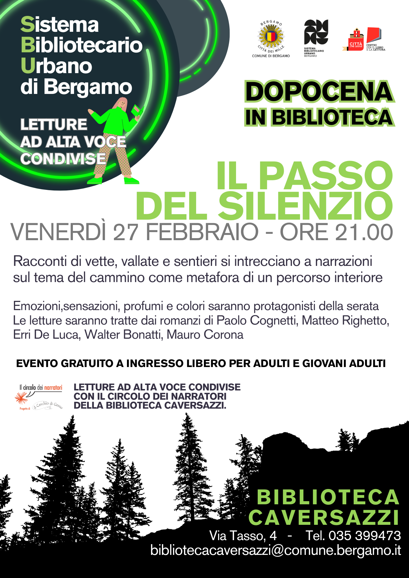 Le letture saranno tratte sai romanzi di Paolo Cognetti, Matteo Righetti, Erri De Luca, Walter Bonatti, Mauro Corona...