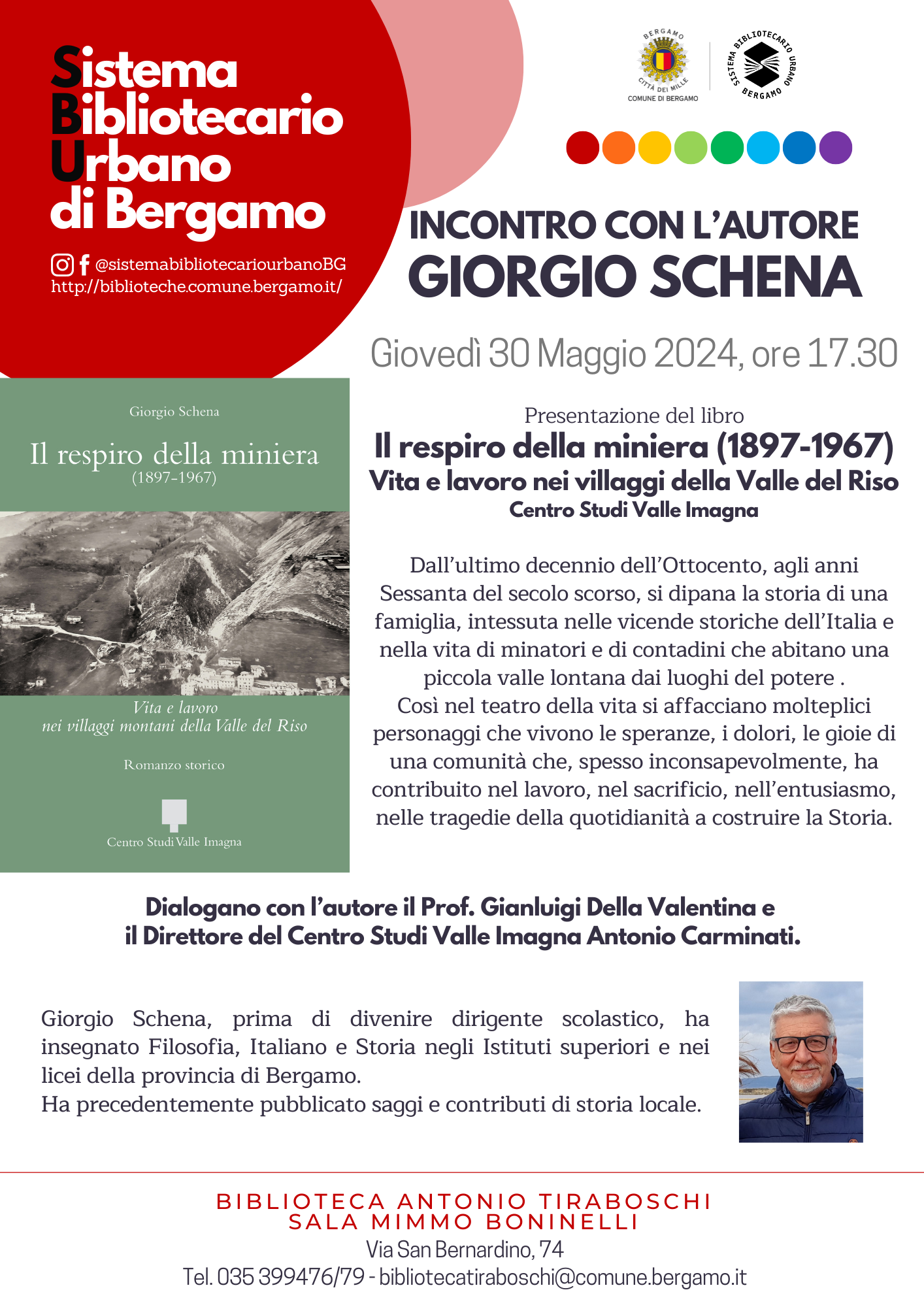 Presentazione del libro "Il respiro della miniera" (1897-1967): Vita e lavoro nei villaggi della Valle del Riso Centro Studi Valle Imagna di Giorgio Schnea.