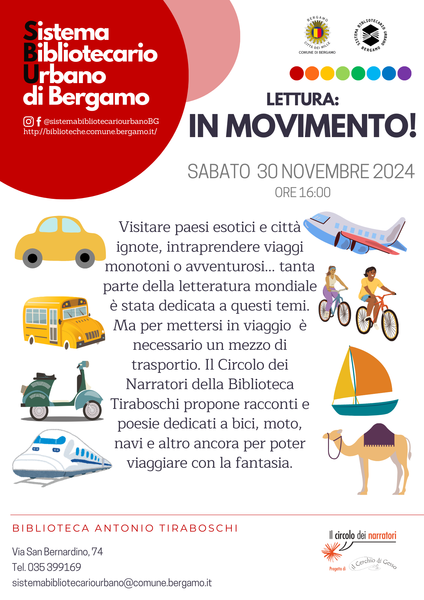 Per mettersi in viaggio è necessario un mezzo di trasporto. Il circolo dei narratori della Biblioteca Tiraboschi propone racconti e poesie dedicati a bici, moto, navi e altro ancora per poter viaggiare con la fantasia.