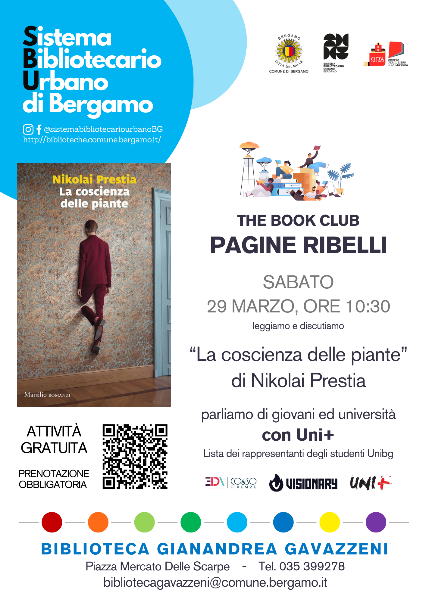 Il gruppo di Lettura Pagine Ribelli commenterà "La coscienza delle piante" di Nikolai Prestia: un'occasione per parlare della salute mentale in università.