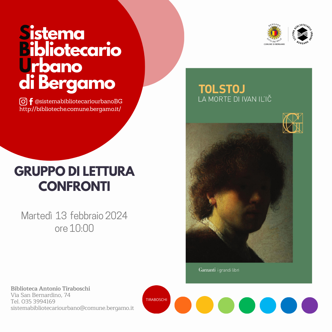 l gruppo di lettura "Confronti" discuterà il romanzo "La morte di Ivan Il'ic" di Lev Tolstoj.