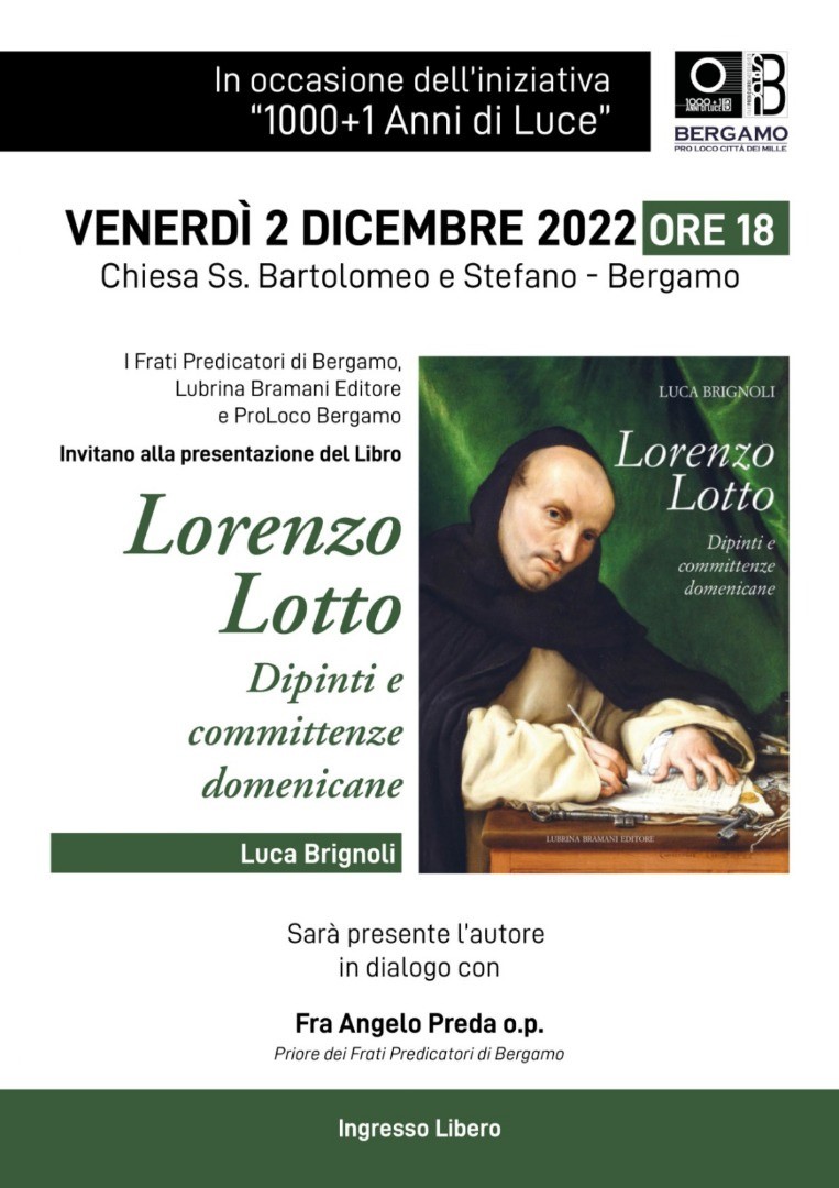 In occasione dell'iniziativa "1000+1 Anni di Luce", i frati Predicatori di Bergamo, Lubrina Bramani Editore e ProLoco Bergamo invitano alla presentazione del libro di Luca Brignoli.