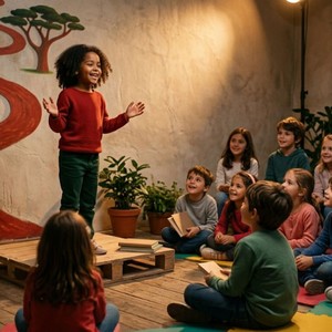 Attivitร di lettura teatrale di albi illustrati sul tema della felicitร secondo il punto di vista delle bambine e dei bambini.