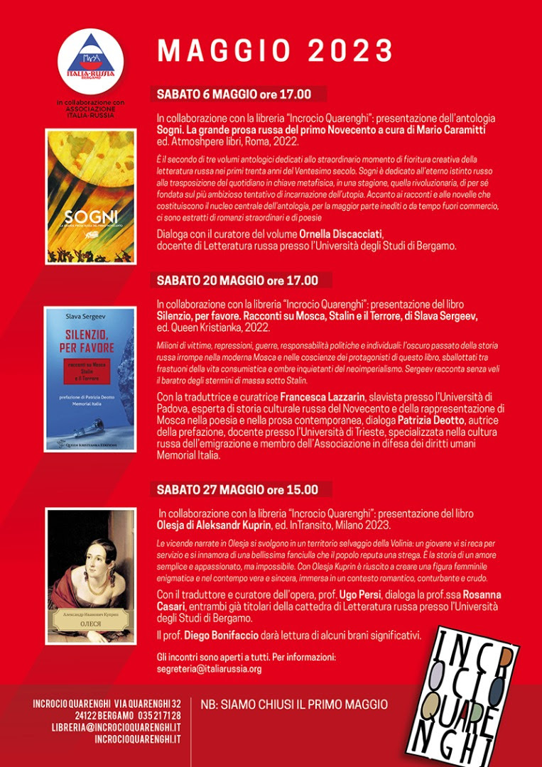In collaborazione con la libreria "Incrocio Quarenghi", presentazione del libro di Aleksandr Kuprin, con il traduttore e curatore dell'opera, prof. Ugo Persi in dialogo con la prof.ssa Rosanna Cesari.