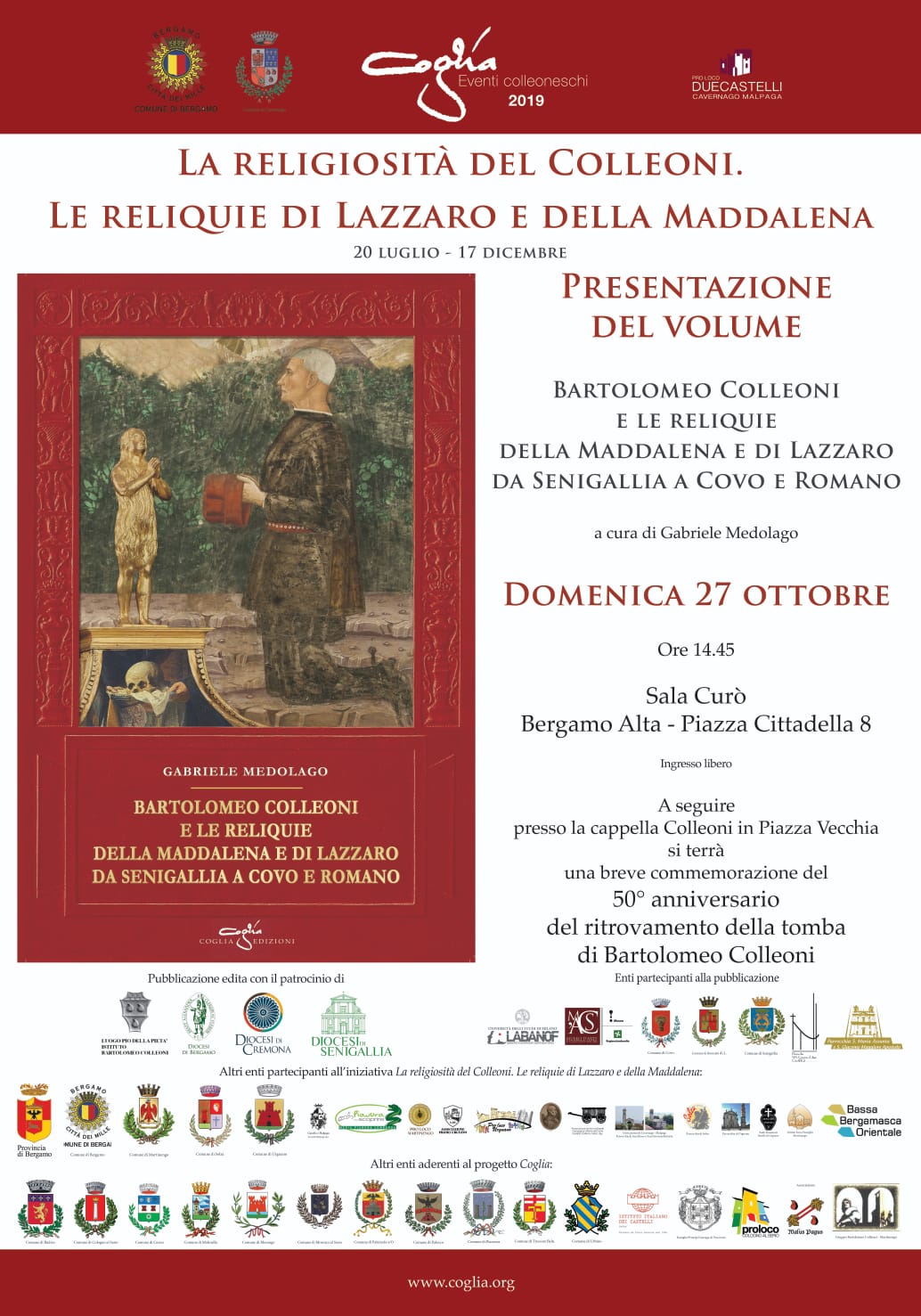 Appuntamento per la presentazione del volume «Bartolomeo Colleoni e le reliquie della Maddalena e di Lazzaro da Senigallia a Covo e Romano»
