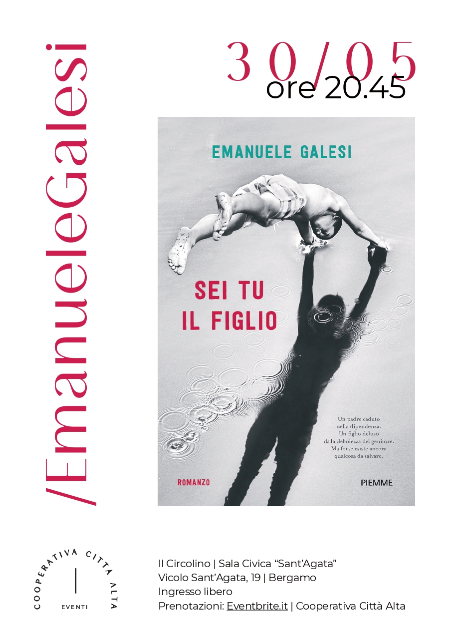 Serata in compagnia di Emanuele Galesi che presenterà la storia vera, senza retorica, di un figlio che sopra il letto in una stanza d'ospedale vede un uomo consumato dalla droga.