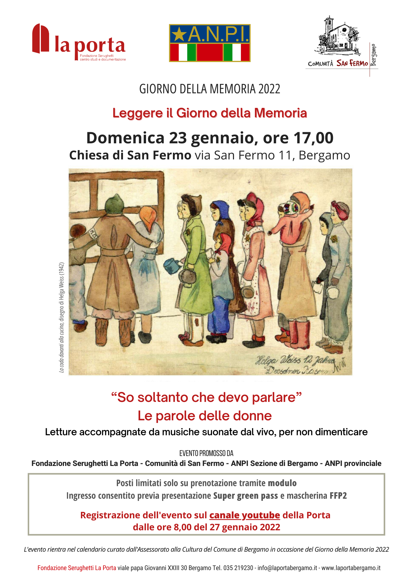 Chi non potrà partecipare in presenza potrà unirsi a noi giovedì 27 gennaio (dalle ore 8,00) guardando la registrazione delle letture sul canale youtube della Porta (clicca qui).