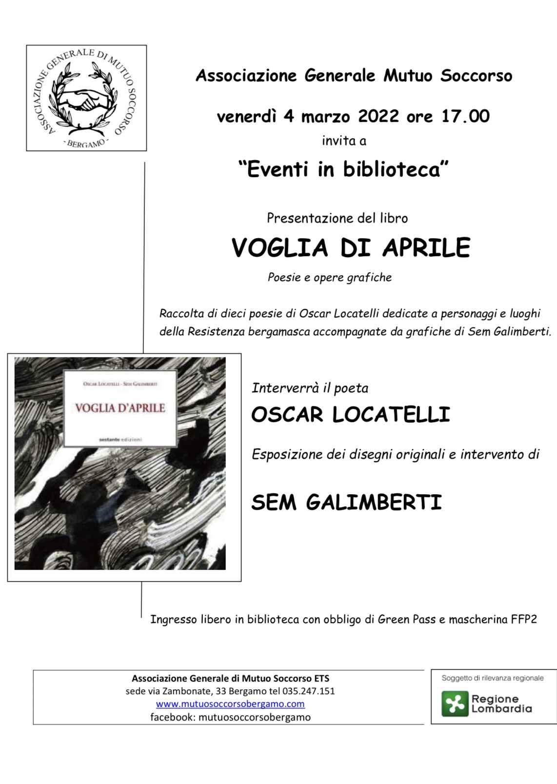L'Associazione Generale Mutuo Soccorso invita a "Eventi in biblioteca" per la presentazione del libro "Voglia di Aprile".