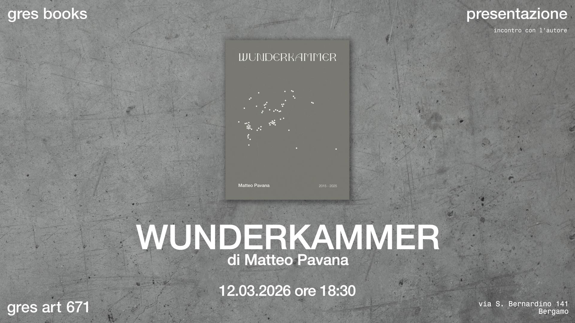 Primo appuntamento delle presentazioni targate «gres books», il nuovo format di gres art 671 dedicato ai libri e agli incontri con autrici e autori. Uno spazio di approfondimento e dialogo che affianca la programmazione espositiva, aprendo momenti di confronto attorno a pubblicazioni che attraversano i temi della contemporaneità e delle pratiche artistiche. Il primo appuntamento è dedicato a WUNDERKAMMER, il primo libro fotografico di Matteo Pavana (Trento, 1990).