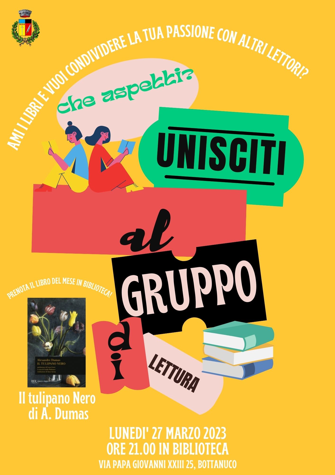 La biblioteca del comune di Bottanuco organizza una nuova giornata di lettura, verrà letto il libro Il tulipano nero di A. Dumas.