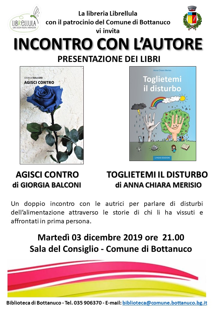 Un doppio incontro, ospitato dal comune di Bottanuco, con le autrici, Giorgia Balconi e Anna Chiara Merisio, per parlare di disturbi dell'alimentazione attraverso le storie di chi li ha vissuti e affrontati in prima persona.