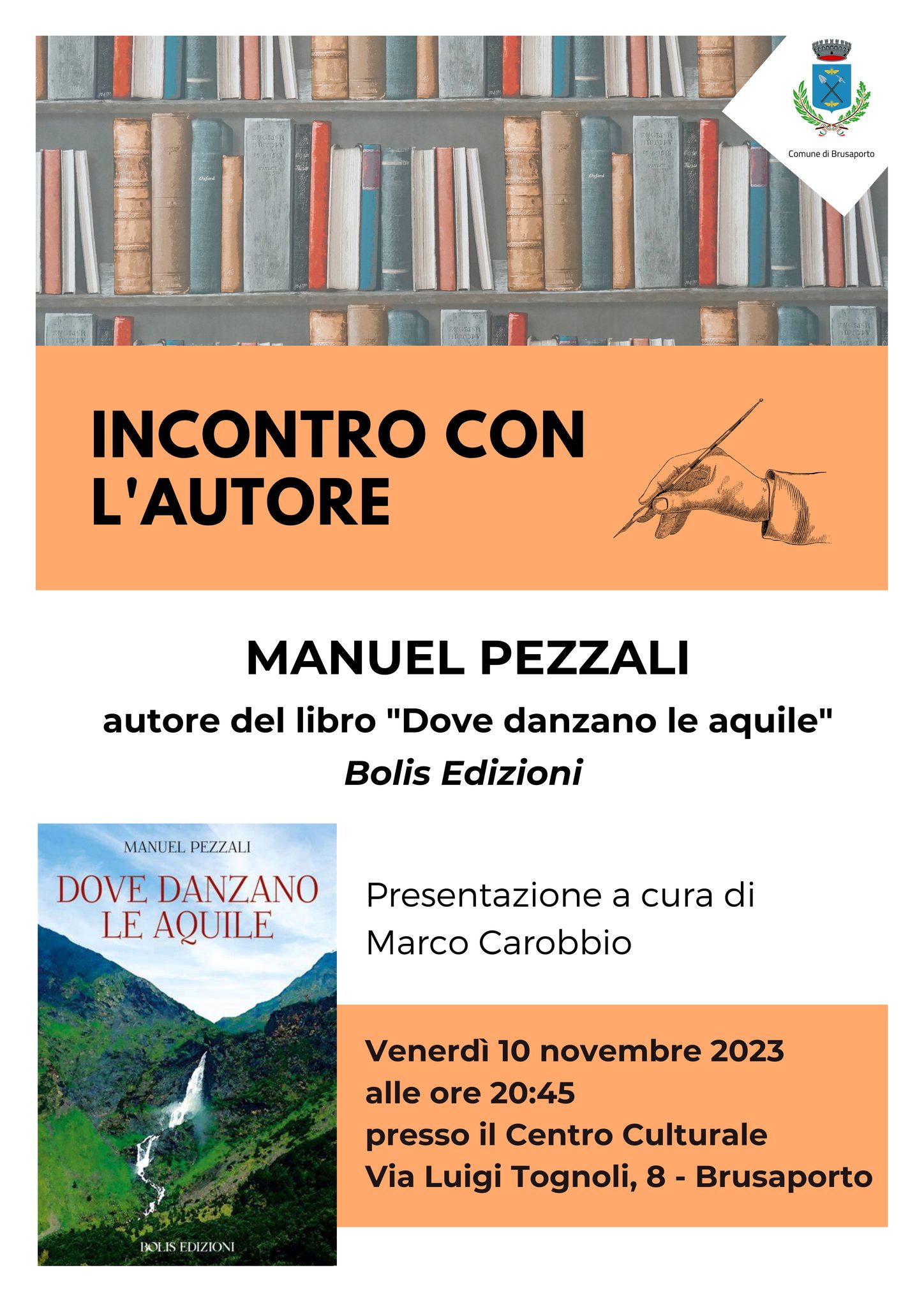 Per il ciclo "Incontro con l'autore", il Centro Culturale di Brusaporto ospita l'autore Manuel Pezzali con il nuovo libro "Dove danzano le aquile", un racconto emozionante ambientato nell'alta Val Seriana.