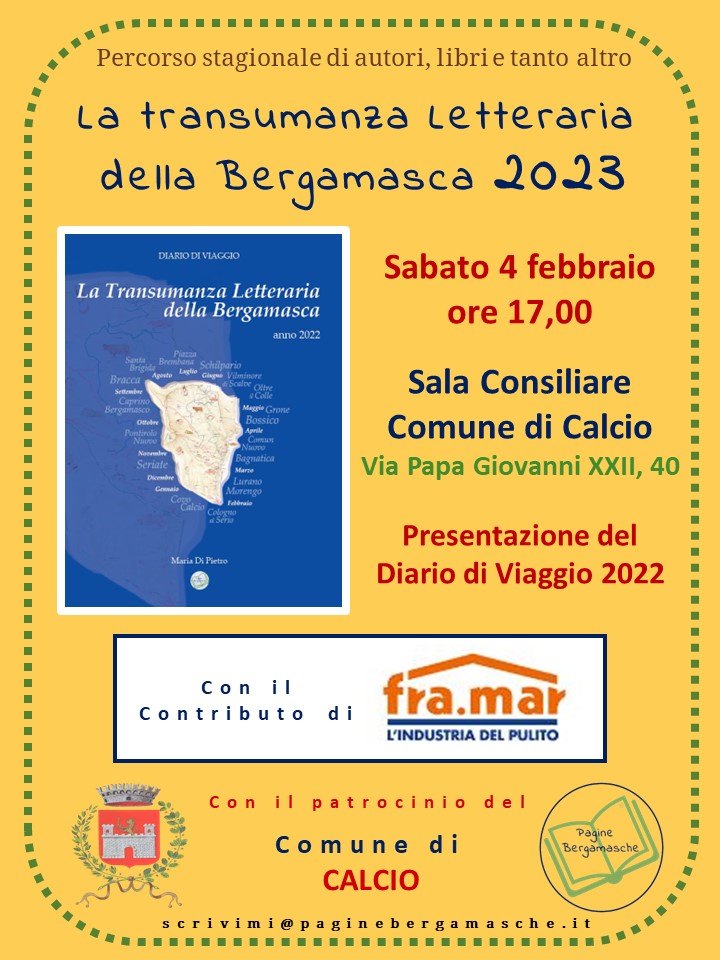 Ricomincia la Transumanza Letteraria della Bergamasca con una pubblicazione ad hoc. Esce, edito da Zephyro Edizioni S.r.l. di Treviglio, il Diario di viaggio de La transumanza letteraria della Bergamasca 2022 grazie alla generosa sponsorizzazione di Fra.Mar Spa e alla gentilezza del commendatore Francesco Maffeis in persona.