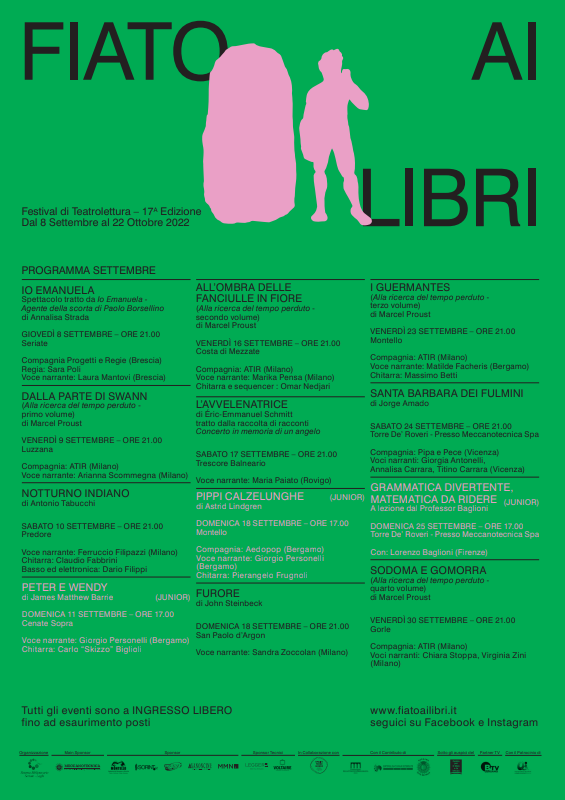 L’evento è parte dell’edizione 2022 di Fiato ai libri, festival di sole letture sceniche organizzato da Sistema bibliotecario Seriate Laghi e Libreria Spazio Terzo Mondo di Seriate.