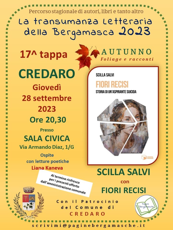 Giovedì 28 settembre, alle ore 20,30, si terrà presso la Sala Civica (Via Armando Diaz, 1/G) di Credaro la 17a tappa di "La Transumanza Letteraria della Bergamasca 2023", il percorso letterario di autori sul territorio bergamasco.
