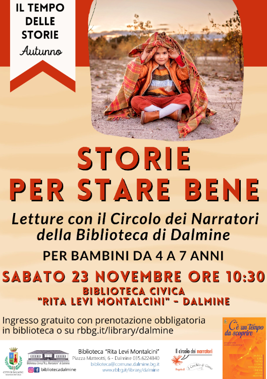 Dalmine: un pomeriggio dedicato al benessere dei più piccoli. Sabato 23 novembre, alle ore 10:30, la Biblioteca Civica "Rita Levi Montalcini" ospiterà una mattinata dedicata alle letture animate per bambini dai 4 ai 7 anni.