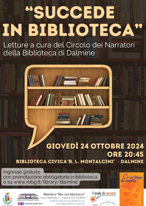Prosegue la rassegna culturale "C'รจ un tempo da scoprire" della cittร di Dalmine: appuntamento con la serata per adulti in Biblioteca, dedicata al mondo della lettura. Un'occasione per trascorrere del tempo in compagnia e con un buon libro!