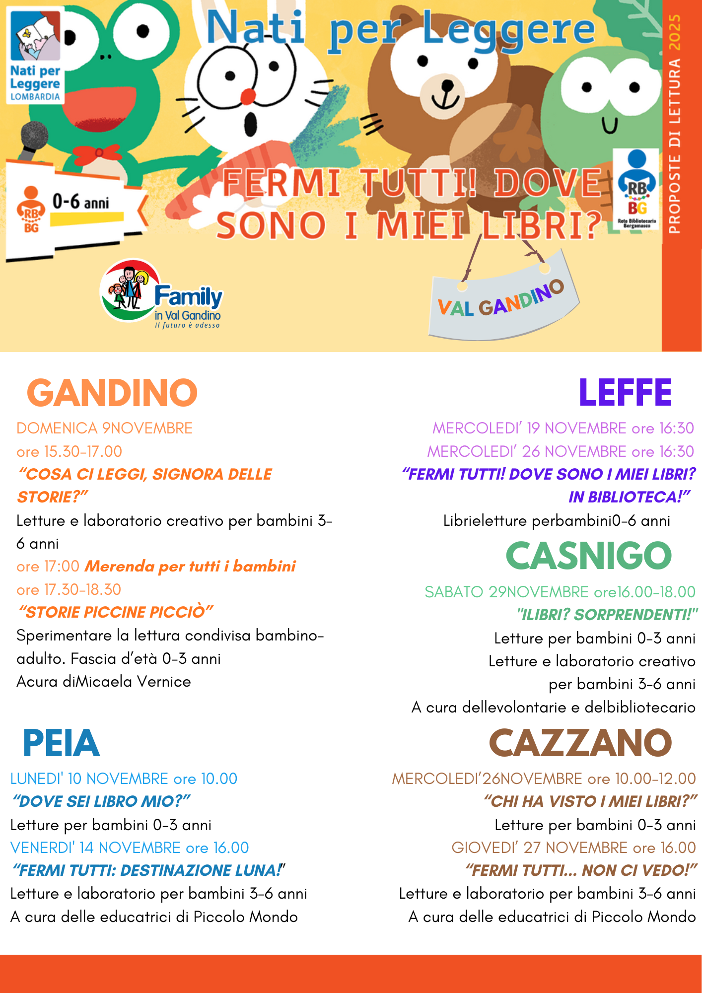 Il progetto Nati per Leggere arriva in Val Gandino con una serie di appuntamenti dedicati ai più piccoli e alle loro famiglie.