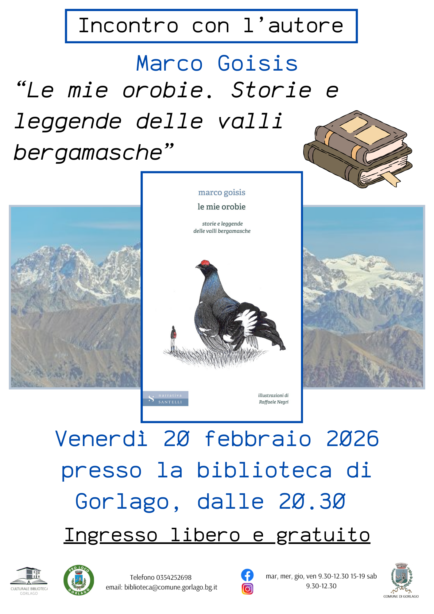 La Biblioteca di Gorlago ospita un incontro con l’autore Marco Goisis, dedicato alla presentazione del libro «Le mie Orobie. Storie e leggende delle valli bergamasche».