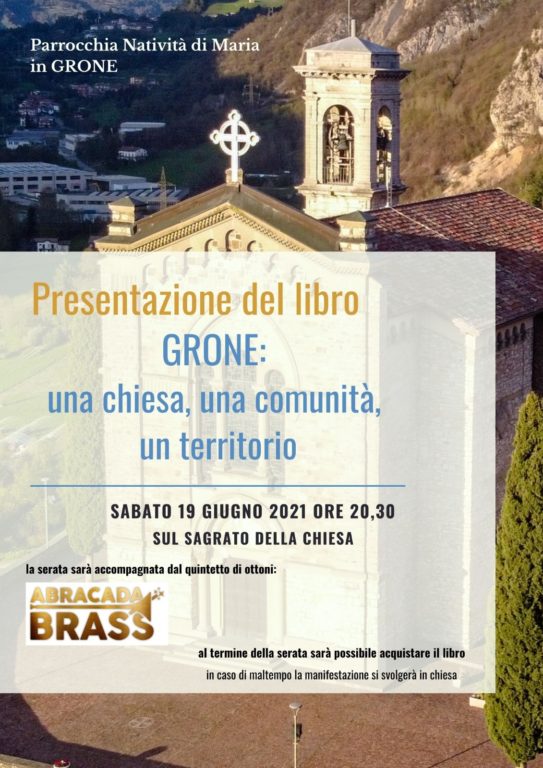 Sabato 19 giugno alle 20,30 sul sagrato della chiesa di Grone ci sarà la presentazione del libro “Grone: una chiesa, una comunità, un territorio”. Al termine della serata sarà possibile acquistare il libro.
