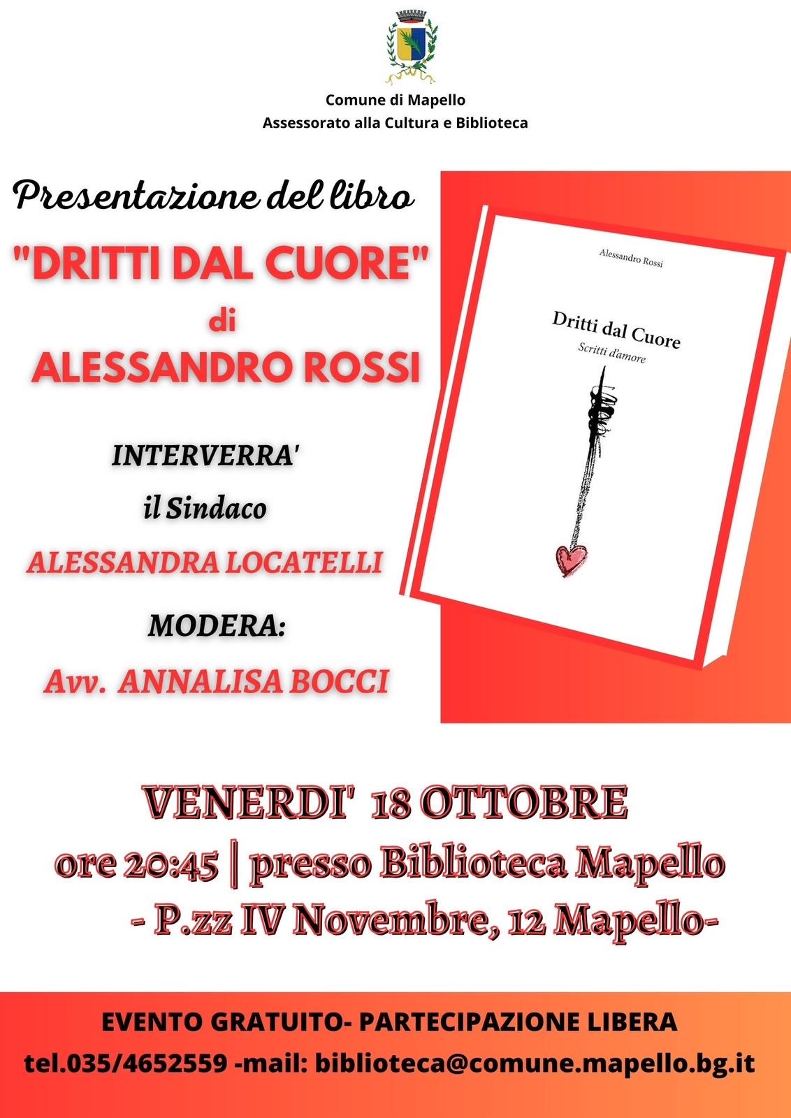 Questa sera, alle ore 20:45, la Biblioteca di Mapello ospiterà la presentazione del libro "Diritti dal Cuore" di Alessandro Rossi.
