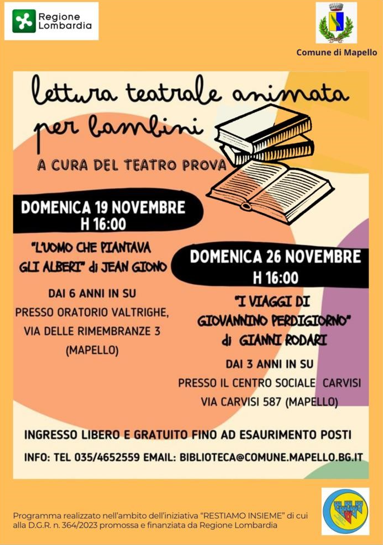 Presso il Centro Sociale Carvisi, si terrà la lettura teatrale animata per bambini a cura del "Teatro Prova" dal titolo "I viaggi di Giovannino Perdigiorno", libro del celebre autore Gianni Rodari.