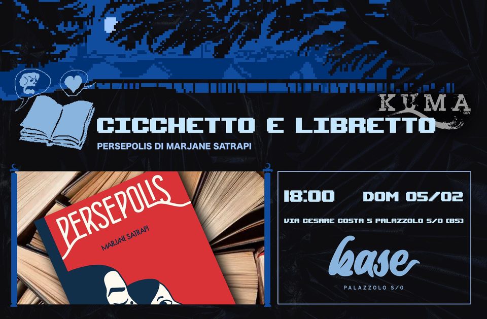 Continuano gli appuntamenti di Cicchetto&libretto, in collaborazione con Kuma: in serata ci si potrà incontrare per discutere del libro di Marjane Satrapi.