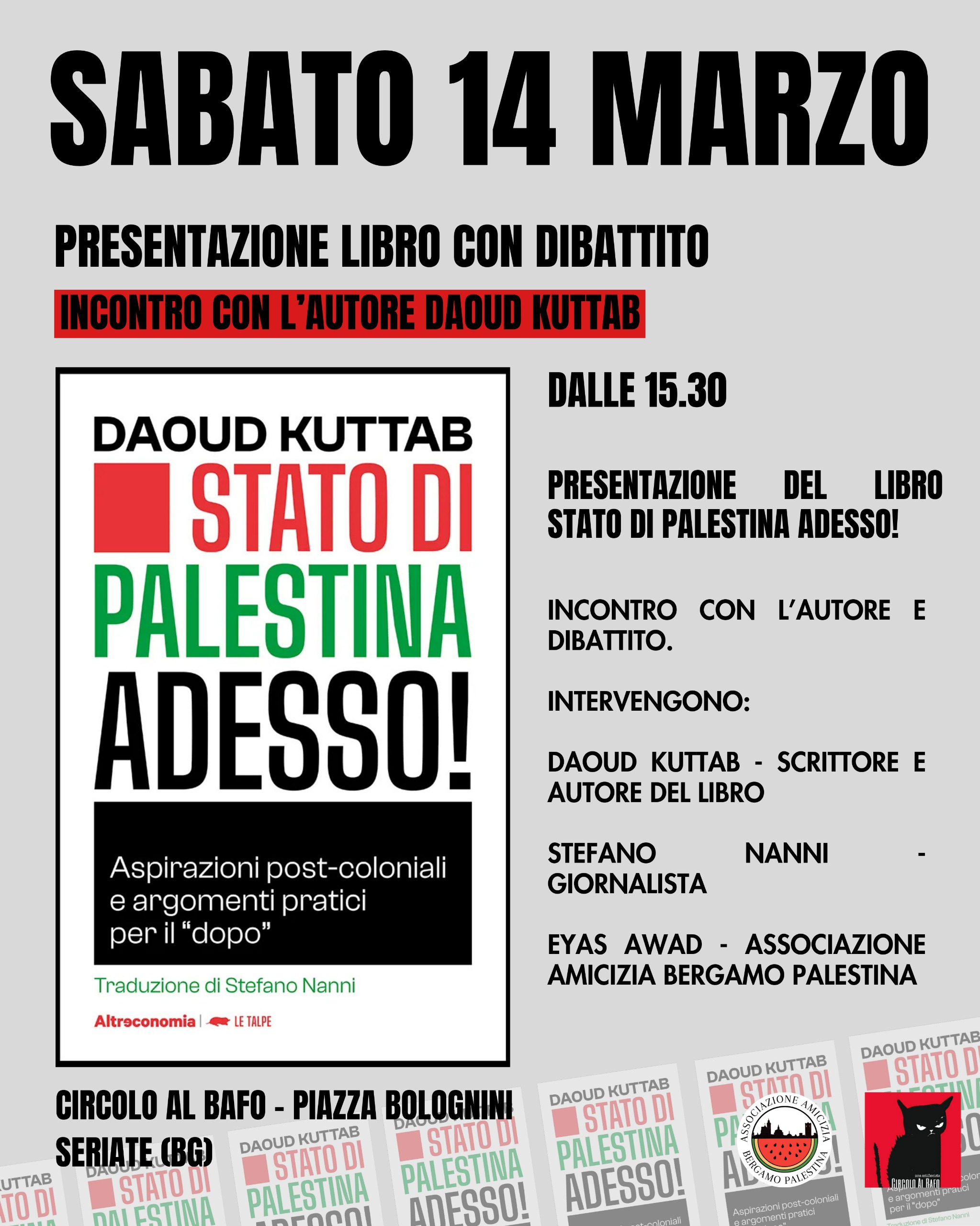 Presso la sede del Circolo Al Bafo di Seriate, è in programma la presentazione del libro di Daoud Kuttab, in dialogo con il giornalista Stefano Nanni. Un incontro per riflettere, comprendere e dialogare.