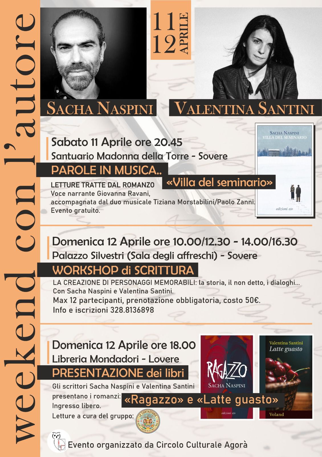 Il Circolo Culturale Agorà di Sovere organizza, per il secondo fine settimana di aprile, una serie di incontri per promuovere gli autori locali.