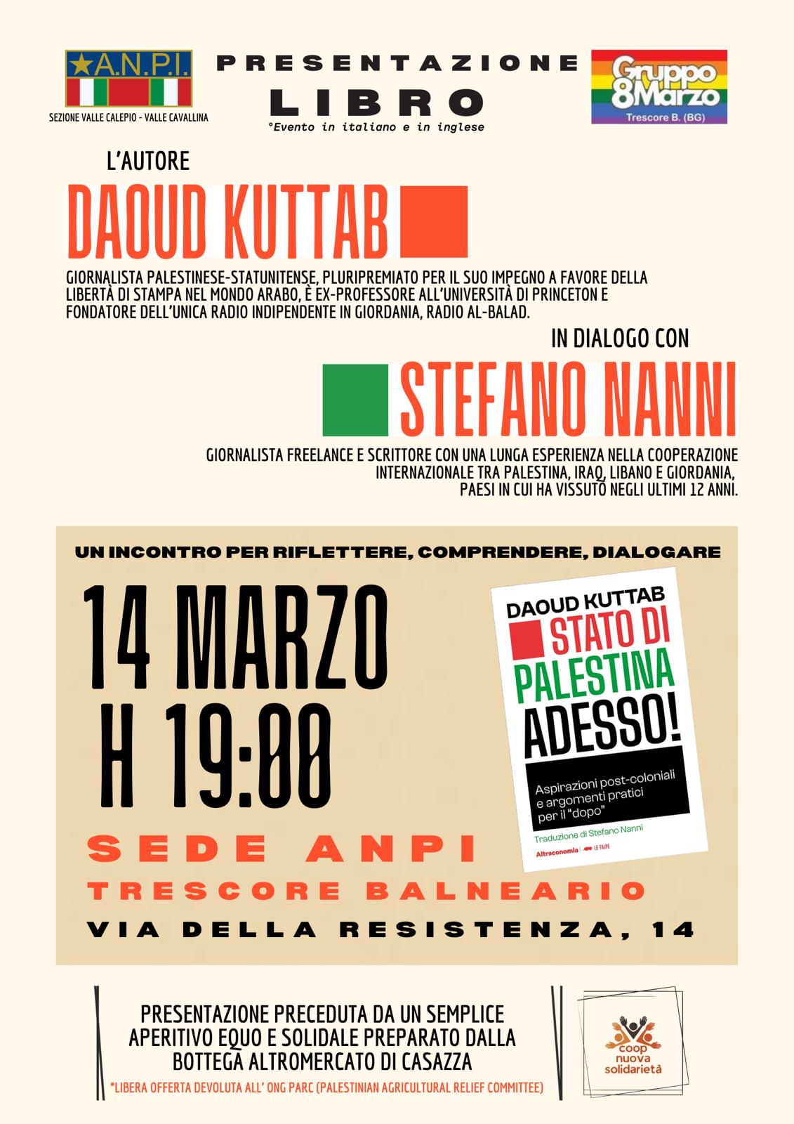 Presso la sede dell'ANPI di Trescore Balneario, รจ in programma la presentazione del libro di Daoud Kuttab, in dialogo con il giornalista Stefano Nanni. Un incontro per riflettere, comprendere e dialogare.