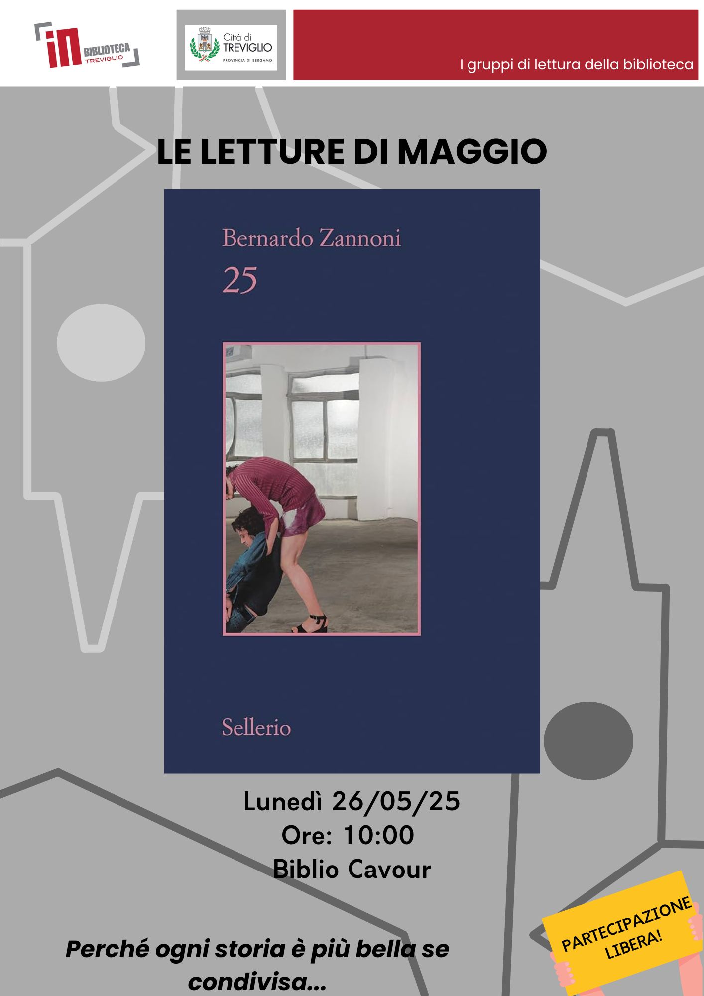 Il gruppo di lettura del lunedรฌ si riunisce in biblioteca per commentare il libro "25" di Bernardo Zannoni